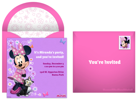 - Decorations: Decorate for your party using pink, purple, black, and white colors. Hang up balloons and use streamers to create a festive-looking party space. You can also hang up cute signs that say “No cats allowed” and “More cheese please!” Hang up a large “Happy Birthday” banner decorated with pink and white polka dots — and of course, include a picture of Minnie Mouse. Find more Minnie Mouse decorations here.