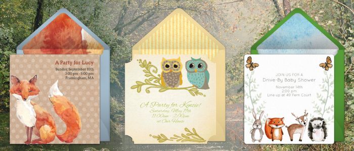 Celebrate baby with adorable woodland creatures. Choose designs that feature adorable owls, furry foxes, and groupings of cute woodland creatures like deer, squirrels, and more. Customize your invite for your upcoming event, including adding Gift Registry details, and monitor RSVPs as they come in.