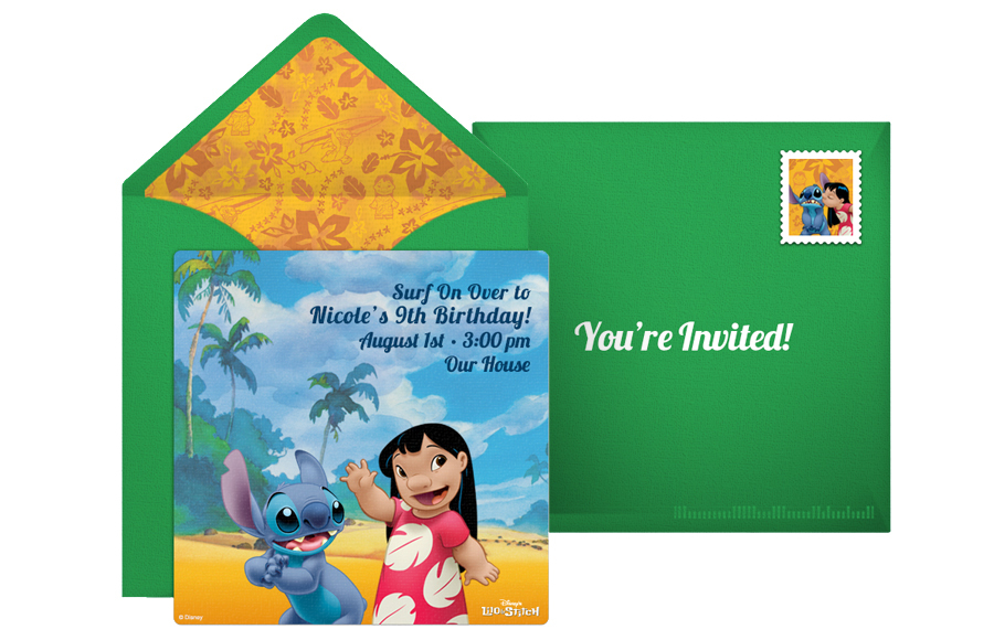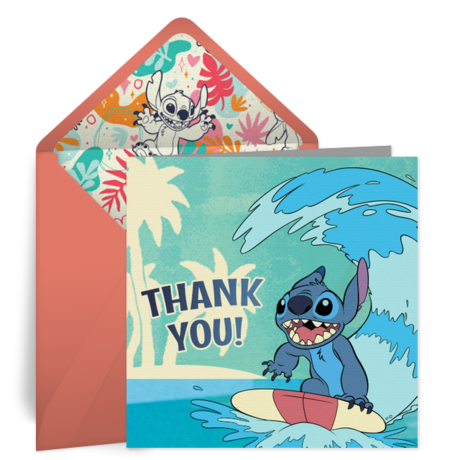 • Thank You Cards: After the luau, send Lilo and Stitch Thank You cards online to let guests know how much you appreciate them attending. Personalize the eCards and send via text or email in minutes.