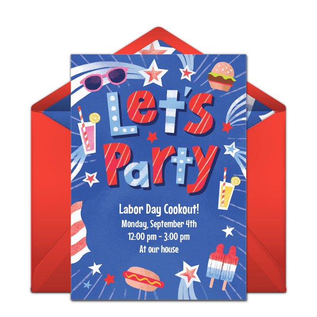 Labor Day is always a busy weekend that fills up with events quickly, so send out online Labor Day invitations to your entire guest list 4-6 weeks before the party. This will ensure that your event will get on calendars before they accept invitations to other Labor Day events. Digital invites also let you easily gather RSVPs online and message your guests with important updates.