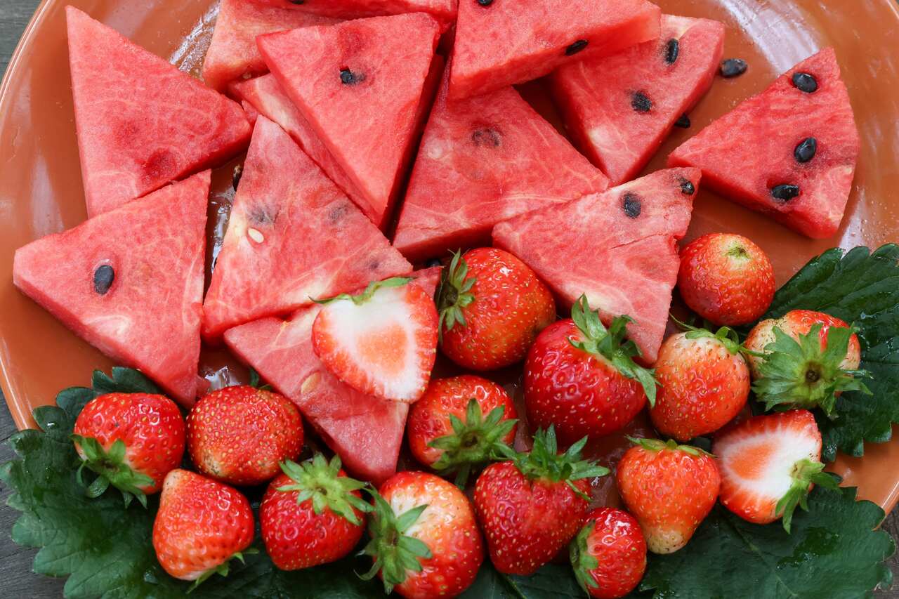 Fresh summer fruits like watermelon and strawberries are perfect to serve at your pool birthday party. Hotdogs, hamburgers, chips, and soda are also good foods to serve, especially if you're able to cookout at home. Add an element of fun into your menu with pool-themed labels like "Pool Noodles" for carrot and celery sticks, "Sharks" for a bowl of Goldfish crackers, and "Pool Water" for blue fruit punch. For a birthday cake, consider an ice cream cake, a favorite summertime treat to help keep kids cool!