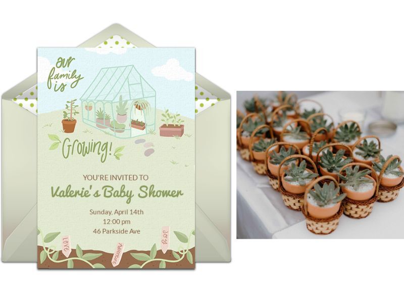 With spring comes new life! Use a garden theme for your baby shower and incorporate beautiful flowers and plants throughout your party space. First, send garden baby shower invitations from any digital device and easily manage RSVPs onlilne. Purchase balloons and streamers in earth tones and natural greens and place wildflowers in small vases at each table. Make a shower banner out of twigs or greens and hang over the main table. Party favors can be mini potted succulants or wildflower seeds. -garden-baby-shower-invitations (2).jpg54.94 KB