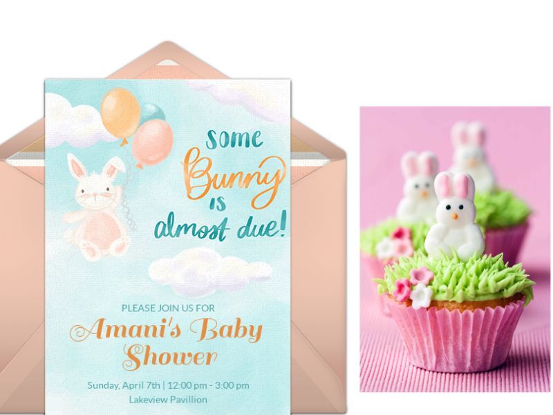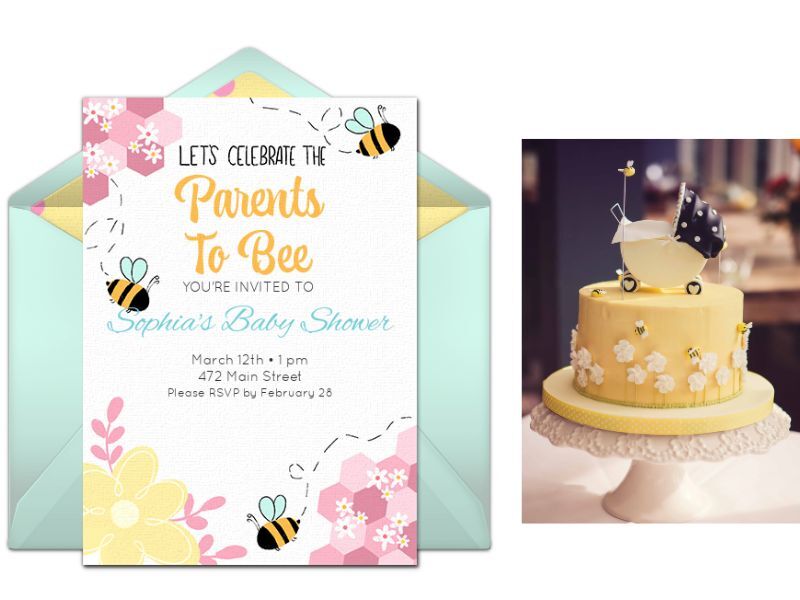 Incorporate cute, fuzzy pollinators into your spring baby shower! Start with bee baby shower invitations you can customize and deliver by text or email instantly. For decor, use a yellow and white color scheme for tableclothes, plates, etc. and then accent with vases full of fresh spring flowers. Use bee decorating details (which can be found at most craft stores) as much as possible throughout the party space. Decorate a cake with flowers and little buzzing bees. Food and desserts can be honey-based: brunch with honey-wheat pancakes, fresh fruit, and maple-honey bacon.