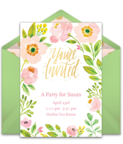 Before you dive into decorations, set the stage for your event with beautiful, floral invitations for spring birthdays, retirements, dinner parties, and more. Customize your favorite invitation, send by text or email, and easily manage RSVPs online.