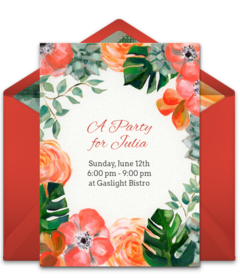 Foods that fall in the light, crisp and delicious categories are great options for spring party recipes. Think of foods that use ingredients such as juicy fruits or fresh vegetables and have a crisp and crunchy texture to make your spring recipes seasonal and unique. Before you plan your menu, set the stage for your celebration with gorgeous spring party invitations you can customize and deliver by text or email instantly.