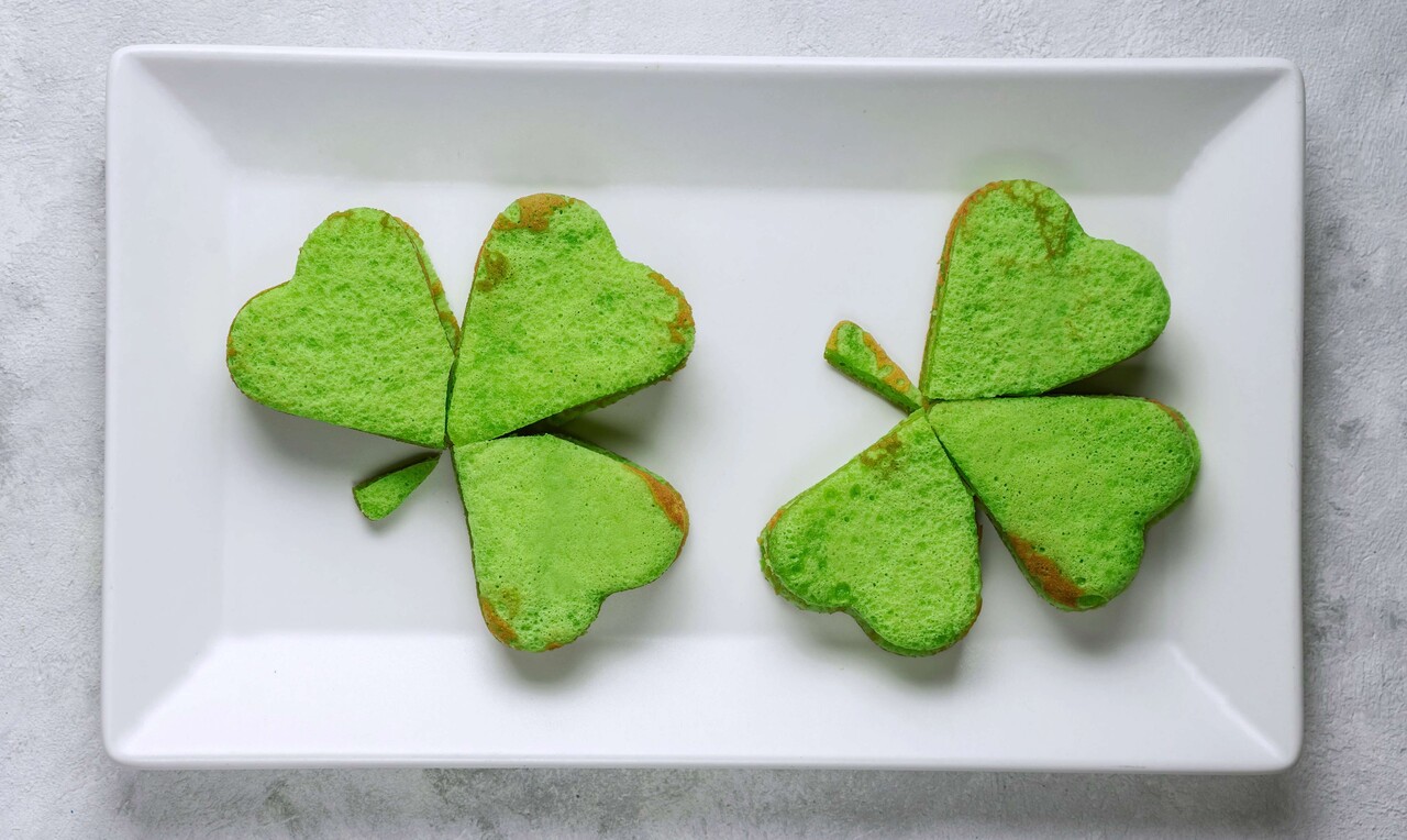 After the gold coin discovery, keep the St. Patrick's Day theme going with breakfast. Use heart-shaped cookie cutters to create shamrock pancakes. Just cut the shape three (or four) times into the pancake to form a shamrock. Use food coloring to make green milk. Serve with green grapes or honeydew to keep your theme going.