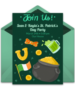 Hosting a St. Patrick's Day party? Be sure to send online St. Patrick's Day invitations to easily manage RSVPs and communicate with guests.