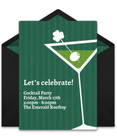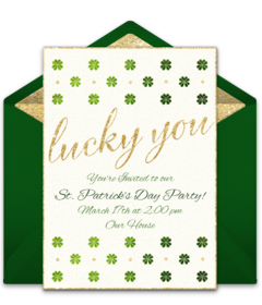 Your invitations set the stage for your party so that your guests know what to expect. Whether you are planning a small gathering with family, a kid’s party, or a large adult event, make sure to send online St. Patrick's Day invitations that incorporate the spirit of the holiday. Customize a design with shamrocks, leprechauns, pots of gold, and lots of green, then send by text or email in minutes. Your festive invitations will add a special touch to your event and get your guest in the St. Patrick’s Day mood early.