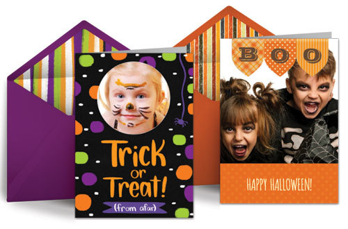 - Share Photos: One of the best parts of Halloween is dressing up and showing off your costume. You can still share your ghostly garb this year with a Halloween photo card. Get your kiddos (and yourself!) into costumes, snap a pic, add it to your favorite photo card, and email or text it right from your phone. Your friends will love to be included in the Halloween festivities and they’ll definitely appreciate the thoughtful card!