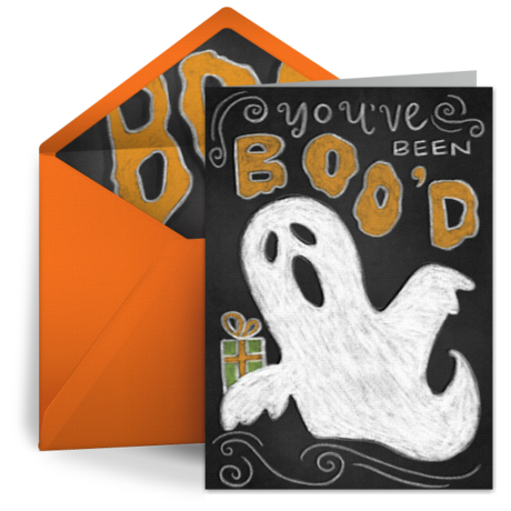 - BOOing Chain: Start a neighborhood “BOOing” chain with a “You’ve been BOO’ed” card. To start, add your own personalized message or a fun holiday poem to the eCard. Email or text the card to one neighbor and encourage the recipient to keep the Boo going by sending their own “You’ve been BOO’ed” card to another neighbor!