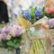Stripes: A fun and very festive summer tablescape is to incorporate stripes across the table. Use a striped table cloth and paint stripes using glass paint on mason jars. Fill the jars with fresh-picked wildflowers and flowering branches. Set the table with plates that have a contrasting colored stripe and do the same with nice linen napkins. By each place setting, place a small, single flower vase with one flower. Some great flower ideas are dahlias, peonies, wild roses and lilies.