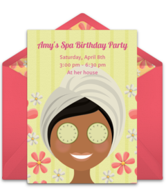 - Send spa-themed invites. Let the girls know that they are being invited to a very special new spa in town — the one you're going to create at your house (or maybe get a hotel room for the night). All they need to bring is their PJs, but let them know that they can also bring any products of their own that they want to share with the other girls such as nail polish, face masks, etc.