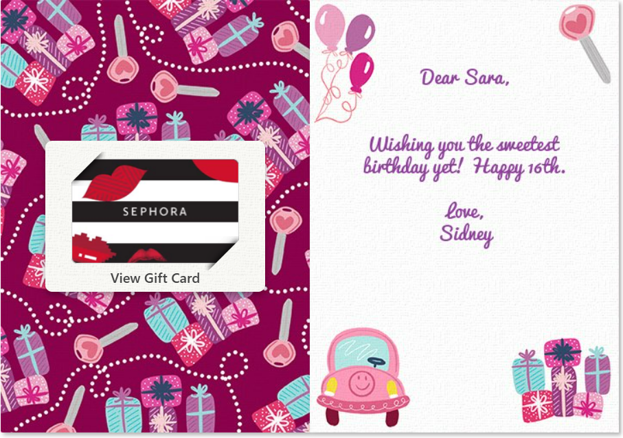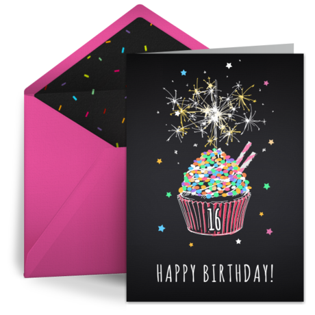 Punchbowl offers free Sweet Sixteen birthday cards that lets you send personalized Sweet Sixteen birthday wishes. Customize colors, fonts, the postage stamp, envelope liner, and rubber stamp then add your own very special Sweet Sixteen greetings in a written message or video message. You can even include a digital gift card to your birthday card. When your card is ready to send, deliver it instantly by text or email.