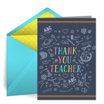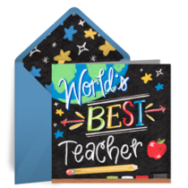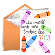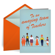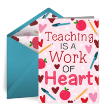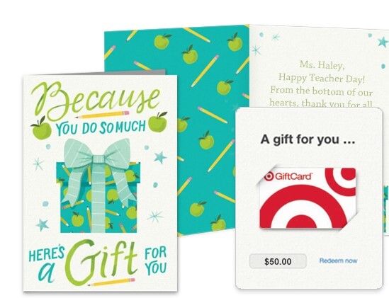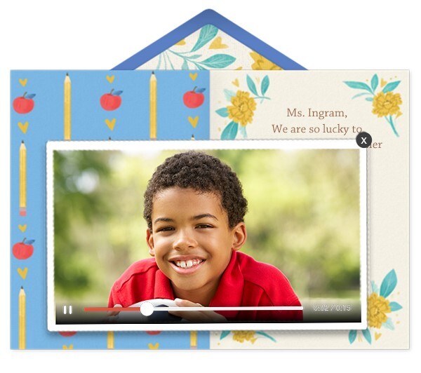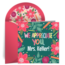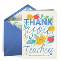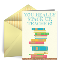 Send personalized eCards to let a teacher know how much their hard work and dedication means to you. Want to really make them smile? Pick a gift card from a brand they'll love, customize the amount, and add it to any Teacher Appreciation card.