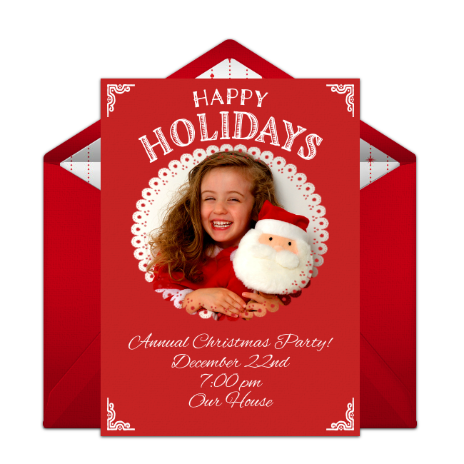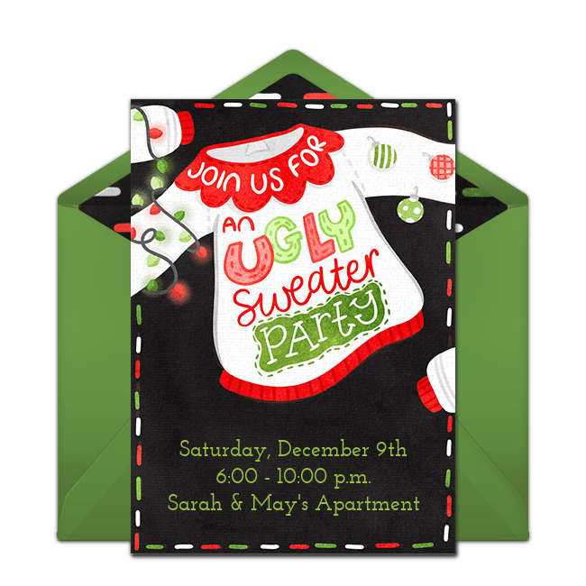Hosting a holiday party? Easily gather friends and family with one of our online Christmas invitations. From Ugly Sweater to Christmas Cocktail parties, our collection includes invites for every holiday celebration! The best part is that you can deliver your invitations immediately by text or email, verify that they were delivered, and manage RSVPs online.