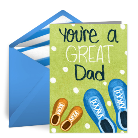 - Dad Sneakers: This adorable card is perfect for a child of any age to send for Father’s Day. Let Dad know that he’s doing a fabulous job!