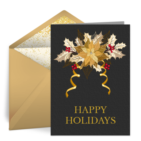 - Business Thanks Poinsettia: Send holiday greetings and thank an employee or colleague for their hard work with this gorgeous poinsettia design that offers a customizable message inside.