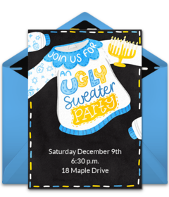 Ugly Sweater parties still reign supreme because they combine festivity with silliness and a bit of nostalgia. Simply put: it’s impossible not to have a good time while dressed in a ridiculous sweater that reminds you of something your Great Aunt Josie used to wear. Set the stage for your party with Ugly Christmas Sweater invitations or Ugly Hanukkah Sweater invitations and decorate with bold, tacky, over-the-top holiday decorations.
