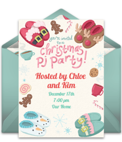 The holiday season can be a busy and stressful time of the year. Invite guests to relax, decompress, and get comfy with a Christmas Pajama Party invitation. Share important event details and encourage attendees to wear their favorite holiday pjs and slippers.