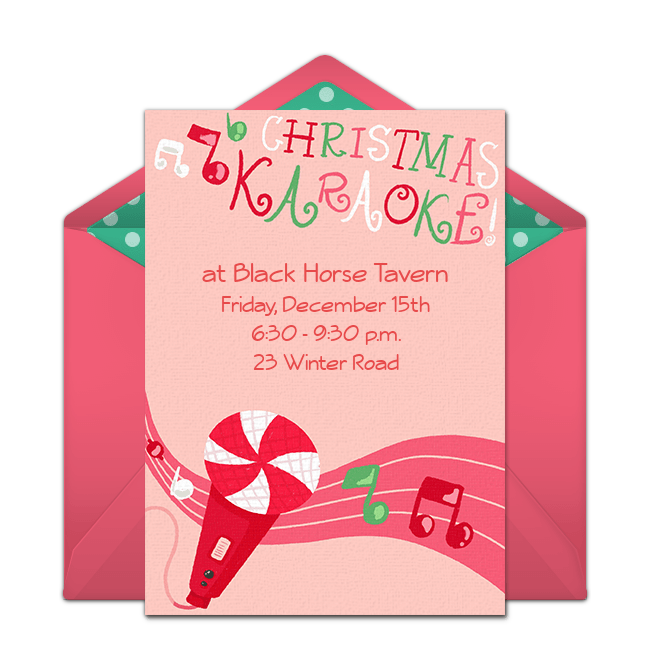 Warm up those vocal chords and host a Christmas karaoke party with favorite holiday tunes. To start, send a fun Christmas Karaoke invitation by text or email. Next, make sure your karaoke machine is in working order and put together a playlist of Christmas karaoke songs. Dress up your space with disco balls, strobe lights, and green, red, and silver tinsel.