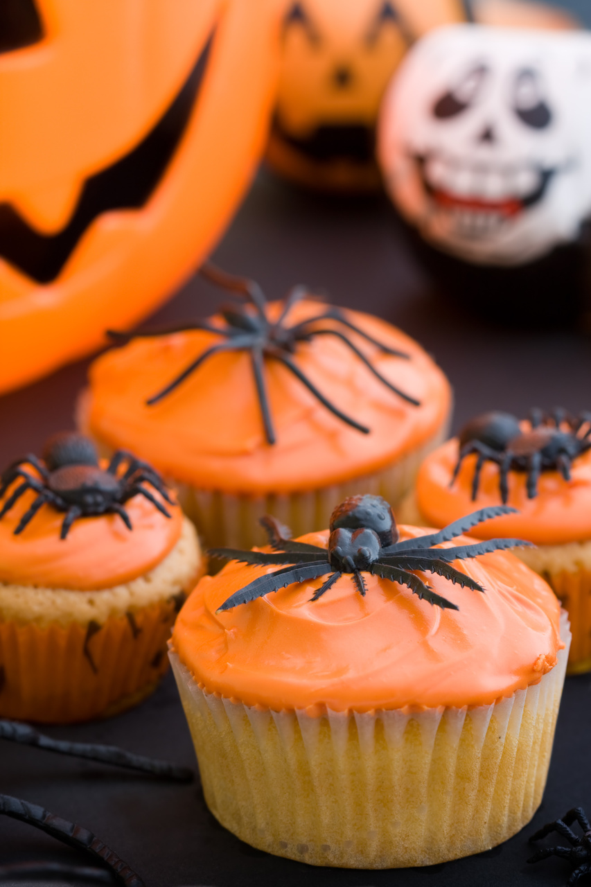 • Hairy Spider Cupcakes: If you’d like to create scary Halloween treats, concoct a batch of hairy spider cupcakes. Bake chocolate cupcakes. Once cool, frost the cupcakes with brown frosting. Place two red hot candies towards the front of the cupcake for the spider eyes. Use black licorice string and frosting to create three legs on each side of the spider. For the final touch, cover all of the chocolate frosting with brown sprinkles. Your spooky Halloween treats are complete!