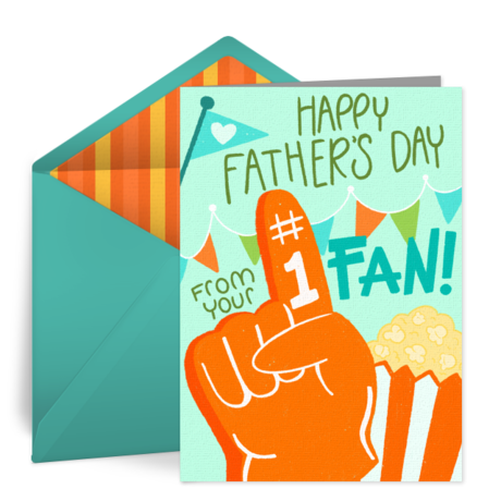 Give Dad a special treat like tickets to a game, sports memorabilia, a customized jersey or fan gear, tailgating equipment, or a personal training session. Recommended Father's Day cards: #1 Fan and By Par.