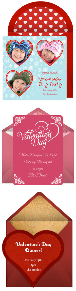 There are even more Valentine party invitations from which to choose that don't fall into either of those categories. Also, when you send Punchbowl Valentine's Day invitations, you can customize the envelope liner, rubber stamp and postage with Valentine's Day inspired accents. Enjoy planning your party!