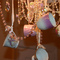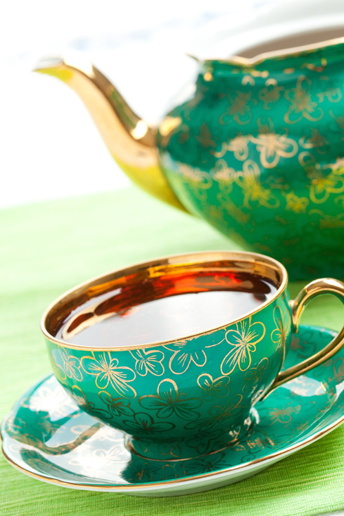 - Decorations: If you want to put a little twist on your Victorian tea party, take some of the extra cups and hang them from your chandelier with satin ribbon and glass beads as seen below. The affect is really stunning, especially the way the light reflects off the beads.