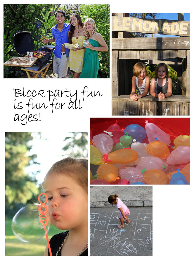 Activities: If there's a basketball hoop, sidewalk chalk and tasty cocktails for the adults, you'll probably be covered in terms of activites at the block party. It doesn't hurt, however, to set up a few organized games to ensure everyone is entertained. Try a few of our suggestions which are good for any age: