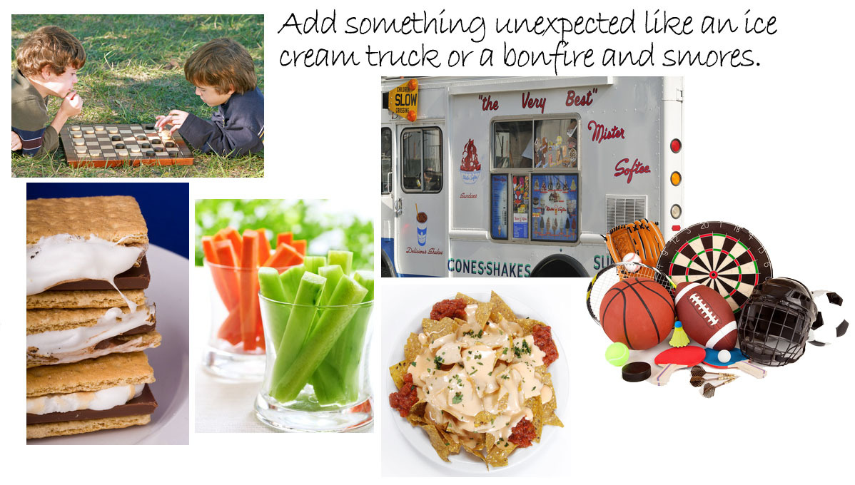 Start and End Early - Setting and cleaning up takes a while, so start early when it's cool outside and end early enough to still have time for dinner and a little night-time relaxation.